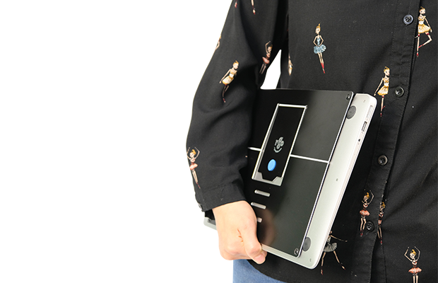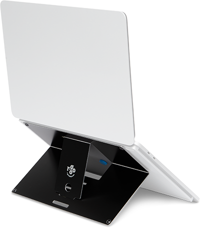 Le Riser Attachable se fixe facilement et une seule fois à l’arrière de votre ordinateur portable à l’aide d’une bande velcro. Vous trouverez les instructions dans notre manuel.